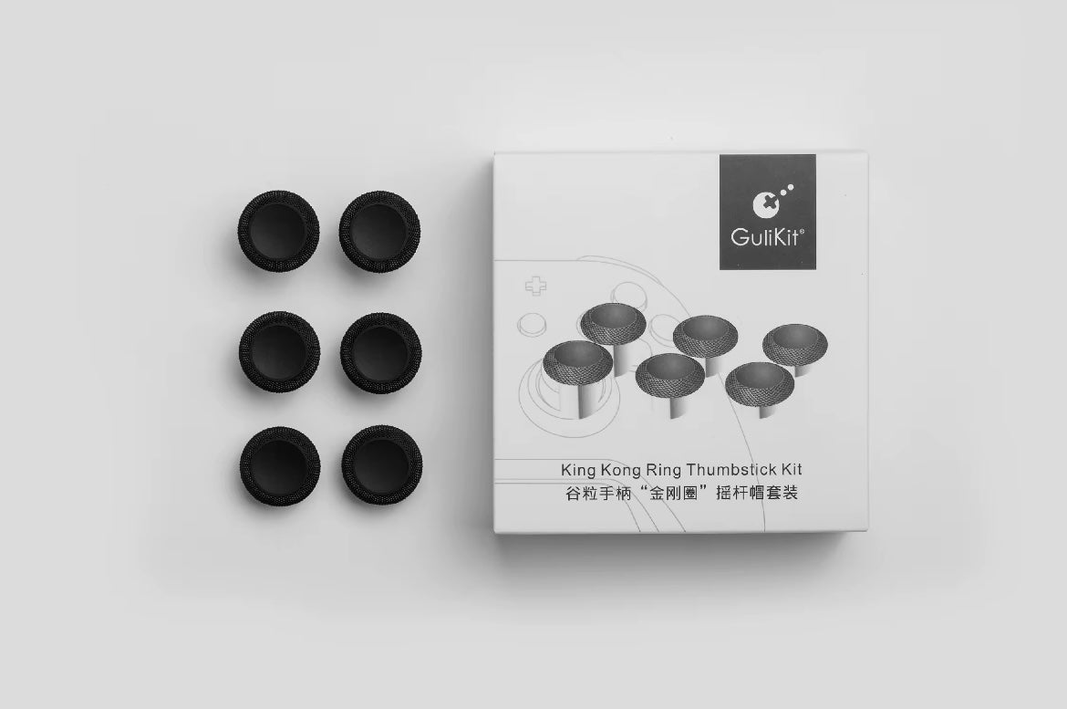 - Gulikit TMR joysticks (x2) - come with 2 thumbstick caps with metal collars, the design of these joysticks means only the Gulikit thumbstick caps will fit and so you must use the included caps. However, they are removable and you can change them with different heights. Related product: Gulikit NS34 KK Thumbstick Caps Kit